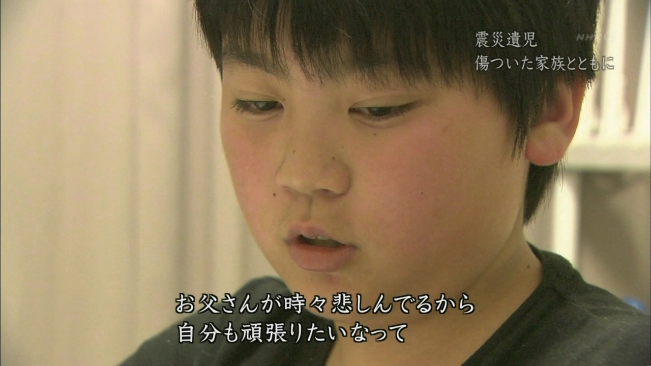 「家族を亡くし失意の父を支える11歳の少年」とかいう見出しにつられて、「NHK震災遺児特集」を録画しました。